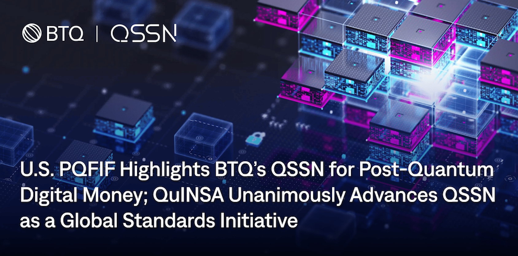 BTQ Technologies’ Quantum Secure Stablecoin Network (QSSN) has been highlighted by the U.S. Post-Quantum Financial Infrastructure Framework (PQFIF) as a model for quantum-secure tokenized deposits, while QuINSA has unanimously advanced QSSN as a global standards initiative. The dual recognition marks a shift from concept to implementation, aligning with NIST’s post-quantum cryptography roadmap and reinforcing BTQ’s role in shaping standards for secure digital money.